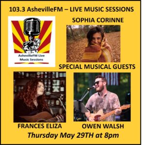 AshevilleFM Live Music Sessions – Sophia Corinne / Owen Walsh / Frances Eliza