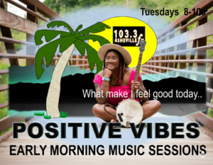 This week – join DJSmittymon as he welcomes “Elizabeth McCorvey” to the Positive Vibes’ Early Morning Music Sessions.. a part-time psychotherapist, full-time musician and full-time delight. Elizabeth writes original “Americana/Bluesgrass” music about people and places that didn’t ask for her opinions.