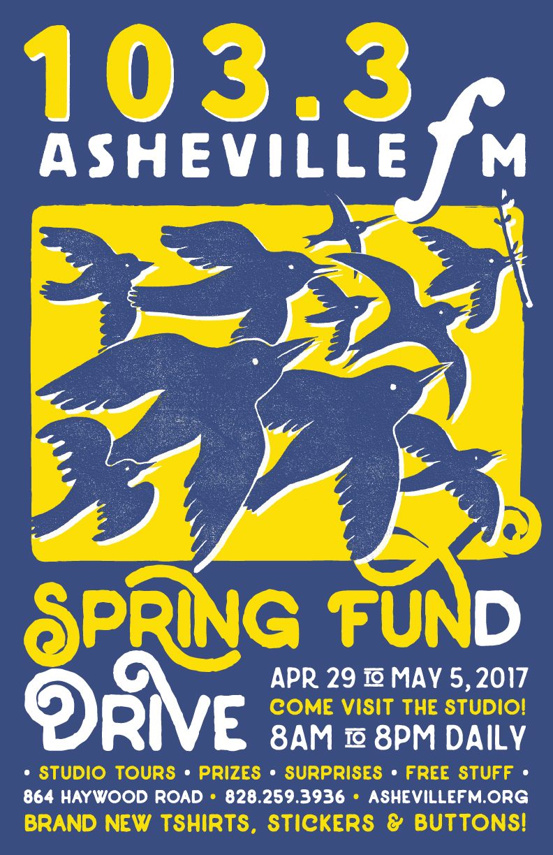 Tune in for our Spring Fund Drive and help us reach our on-air fundraising goals! Call now to make a pledge 828-259-3936. Or pledge online at www.ashevillefm.org/donate
